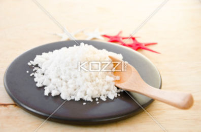Background image of roasted coffee beans from a canvas sack. Focus across the middle.